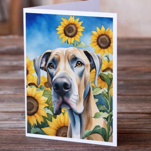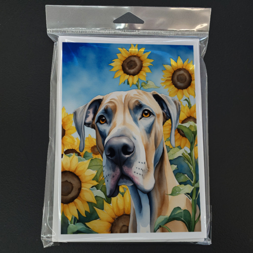 Great Dane in Sunflowers Greeting Cards Pack of 8
