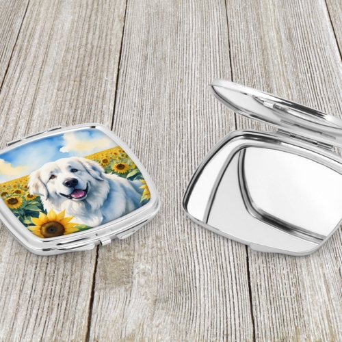Compact Mirror featuring breed specific Great Pyrenees artwork. Introducing our Square Compact Mirror, a blend of elegance, functionality, and compactness, perfect for on-the-go touch-ups. This Silvertone metal mirror, with dimensions of 2.75 inches x 3 inches x .3 inches, fits effortlessly into your purse, handbag, or pocket, ensuring that you can check your appearance anytime, anywhere. Our compact mirror stands out with its eye-catching artwork on the front, adding a dash of style to this practical accessory. It is more than just a mirror; it’s a statement piece that reflects your personality and aesthetic. When opened, this compact reveals two mirrors inside, doubling your perspective for precise touch-ups. The Silvertone metal construction ensures durability while maintaining a lightweight feel, making it an ideal everyday carry item. Whether you’re rushing to a meeting, prepping for a dinner date, or just need a quick check on your look, our Square Compact Mirror is your reliable companion. Experience the perfect blend of style and practicality with this must-have accessory.