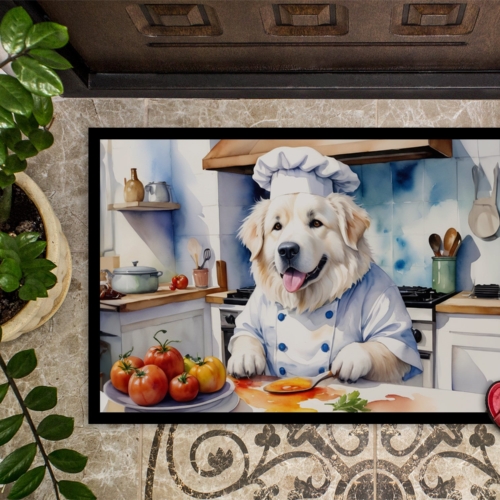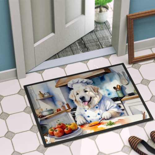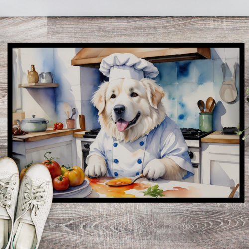 Doormat featuring breed specific Great Pyrenees artwork. Welcome your guests in style with our Artwork Door Mat, designed to withstand almost any weather condition. This mat, measuring approximately 18 by 27 inches, is held together by durable black binding tape. Its top layer, composed of polyester felt, is dyed with the eye-catching image you see on the mat. A few layers below provide the mat with stability, while its rubber bottom is stamped to help prevent slipping and ensures safety. Our mat works wonderfully as both an indoor or outdoor door mat. For cleaning, simply hose it off with water or use a power washer – no need for any cleaner that produces suds. Avoid scrubbing with a brush, instead, opt for the vacuum on floor setting. Designed manufactured and printed in the USA, this mat is a perfect addition to your porch, outdoor kitchen, entryway, or any indoor space. Its unique design makes it a charming decorative rug that greets your guests and adds a stylish touch to your home decor.