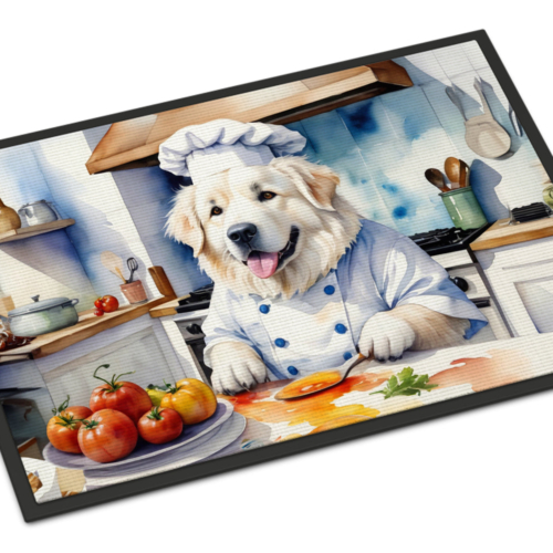 Doormat featuring breed specific Great Pyrenees artwork. Welcome your guests in style with our Artwork Door Mat, designed to withstand almost any weather condition. This mat, measuring approximately 18 by 27 inches, is held together by durable black binding tape. Its top layer, composed of polyester felt, is dyed with the eye-catching image you see on the mat. A few layers below provide the mat with stability, while its rubber bottom is stamped to help prevent slipping and ensures safety. Our mat works wonderfully as both an indoor or outdoor door mat. For cleaning, simply hose it off with water or use a power washer – no need for any cleaner that produces suds. Avoid scrubbing with a brush, instead, opt for the vacuum on floor setting. Designed manufactured and printed in the USA, this mat is a perfect addition to your porch, outdoor kitchen, entryway, or any indoor space. Its unique design makes it a charming decorative rug that greets your guests and adds a stylish touch to your home decor.