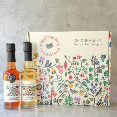 Suitable for vegetarian and vegan diets. A special selection of Womersley’s two Great Taste Award winning fruit vinegars: