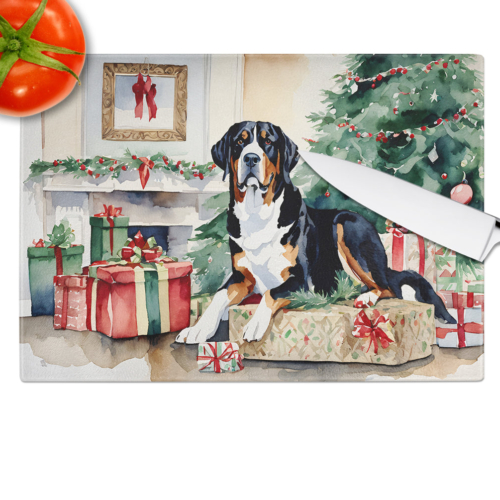 Glass Cutting Board featuring breed specific Greater Swiss Mountain Dog artwork. Celebrate Christmas with this Christmas Cutting Board. Introduce your kitchen to the vibrant, large Decorative Glass Cutting Board from Caroline’s Treasures. Crafted from resilient tempered glass, this board is not only a utilitarian necessity but also a colorful art piece. With its generous dimensions of 15 inches in height and 12 inches in length, it offers ample space for all your cutting needs. Every piece showcases captivating artwork from distinguished artists, bringing an aesthetic edge to your kitchen. Beyond its attractive design, this cutting board ensures your countertop stays pristine and unscathed, owing to its heat-resistant properties. Engineered with user convenience in mind, it features non-skid feet for stability, and rounded corners for additional safety. Its robust construction renders it virtually unbreakable, guaranteeing longevity. The board comes with protective feet bumpers, maintaining its position during use. This product is recommended to be hand washed only. Proudly printed and assembled in the United States, this cutting board exemplifies superior craftsmanship. With Caroline’s Treasures’ Decorative Glass Cutting Board, you’re investing in a blend of functionality and artistic flair.