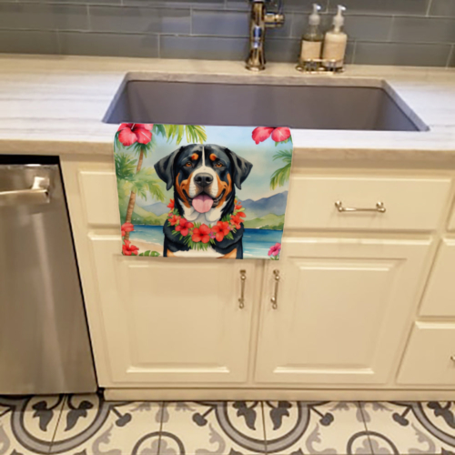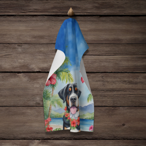 Kitchen Towel featuring breed specific Greater Swiss Mountain Dog artwork. Experience the perfect blend of aesthetic appeal and functional excellence with our Plush Velour Kitchen Towels. These are not your ordinary decorative kitchen towels that gather dust. Instead, they are designed to be as practical as they are stylish. The front layer of our towel is constructed from a minky plush polyester, known for its durability and color retention. Unlike conventional kitchen towels, the artwork on our towels is dyed directly into the fabric, ensuring vibrant colors that last. Polish your glassware to a brilliant sparkle using the plush front side of the towel. Flip to the back, crafted from 100% cotton terry loop, to exploit its exceptional absorbency for drying dishes or wiping down counters. Our kitchen towels redefine the concept of functional art, offering lasting quality that maintains the towel’s shape over time. Measuring 15 inches by 25 inches and weighing 2.3 lbs per dozen, these towels deliver an overwhelming sensory experience with their soft, plush, and smooth texture. The edges are meticulously finished with binding, enhancing their durability and visual appeal. For your convenience, these towels are machine washable and can be dried on low heat. After the first wash, the top fabric becomes even softer and fluffier, eliminating the need for ironing. Treat your kitchen to the luxury and functionality it deserves with our plush velour kitchen towels.