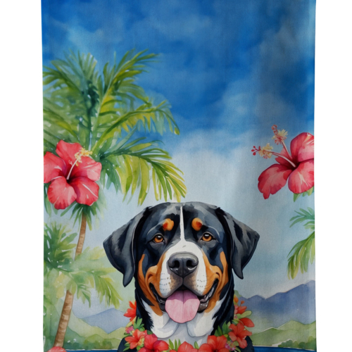 Kitchen Towel featuring breed specific Greater Swiss Mountain Dog artwork. Experience the perfect blend of aesthetic appeal and functional excellence with our Plush Velour Kitchen Towels. These are not your ordinary decorative kitchen towels that gather dust. Instead, they are designed to be as practical as they are stylish. The front layer of our towel is constructed from a minky plush polyester, known for its durability and color retention. Unlike conventional kitchen towels, the artwork on our towels is dyed directly into the fabric, ensuring vibrant colors that last. Polish your glassware to a brilliant sparkle using the plush front side of the towel. Flip to the back, crafted from 100% cotton terry loop, to exploit its exceptional absorbency for drying dishes or wiping down counters. Our kitchen towels redefine the concept of functional art, offering lasting quality that maintains the towel’s shape over time. Measuring 15 inches by 25 inches and weighing 2.3 lbs per dozen, these towels deliver an overwhelming sensory experience with their soft, plush, and smooth texture. The edges are meticulously finished with binding, enhancing their durability and visual appeal. For your convenience, these towels are machine washable and can be dried on low heat. After the first wash, the top fabric becomes even softer and fluffier, eliminating the need for ironing. Treat your kitchen to the luxury and functionality it deserves with our plush velour kitchen towels.