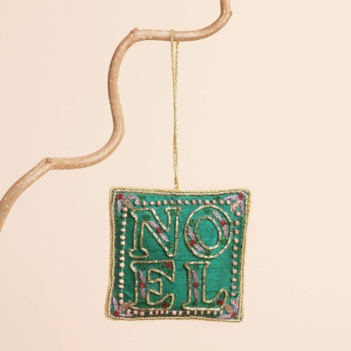 A soft green square hanging decorationWith gold stitching and dainty embroideryMade of velvet with pretty pink beadingPerfect for retailers looking to stock Christmas decorationsDimensions: width 6cm x height 6cmMade from: velvet