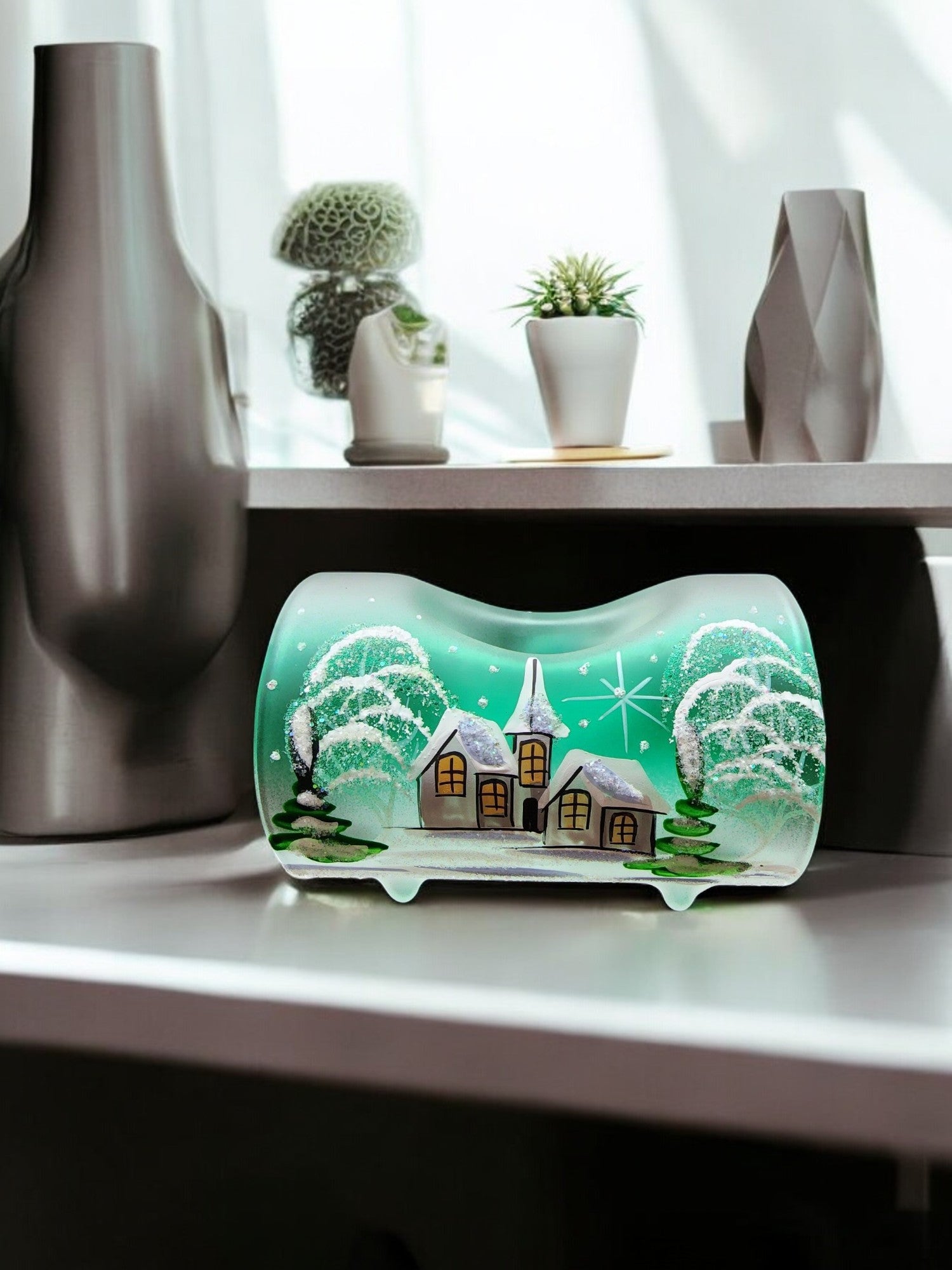 • Handcrafted In L’Viv Oblast, Ukraine• Mouth Blown Glass• Hand Painted – Stencil Free• Wraparound Design Means There’s Always Something To See• Individually Boxed (A Unique Piece Of Glass Art In Every Box)• Single is approximately 4″ long and 2.5″ width and height.• Ships From Greensburg, PA• 1 Day Order Processing• A Gift That Will Be CherishedBrighten your space with the enchanting glow of our hand-painted blown glass candle holders. Featuring a intricate White Church design, each piece is a testament to exquisite Ukrainian craftsmanship. Perfectly sized for tea lights, this unique holder adds a touch of elegance and artistry to any room. Whether you’re seeking a centerpiece for a cozy evening or a thoughtful gift, this candle holder brings warmth and beauty to your home decor. This candle holder can accommodate 1 tea light. Each piece is hand painted and we take great pride in our attention to details. Makes a wonderful gift, especially for those looking for something unique! Each of our blown glass pieces is hand painted with skill, precision and love. While some prefer to use battery operated candles the best results are achieved using a real candle**. These candle holders are designed to accommodate tea lights. Single is about 4″ long and 2.5″ width and height. **Please note the candle holders are hand painted on the outside, so please do not allow them to get wet as water can damage the finish. To remove any wax we suggest a plastic butter-knife or a finger nail to scrape and a napkin or towel to wipe the inside. Please be gentle. Perfect for Christmas, Easter, New Years, Birthdays, Anniversaries, Graduations, Valentine’s Day, Mothers Day, or celebrate a House Warming. Embrace the artistry of glass candle holder, a timeless handcrafted gift. Please allow for slight variances as each piece is unique, just like you. Note: The listed price is for a single candle holder Made In Ukraine