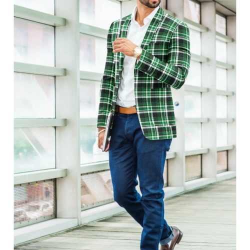 Blazer Color: Green Blazer Fabric: Cotton Blazer Inner Fabric: Satin Lining Closure Type: Button Closure Wash Care: Wash Separately, Hand Washing in Cold Water Is Recommended. Low-Temperature Ironing Okay. Do Not Bleach Available Size: Small (36), Medium (40), Large (44), X-Large (48), XX-Large (52). Package Included: Only 1 Suit Jacket. You Can Choose a Suit Vest and Pants in Our Store to Match with The Blazer. Style Features: The Suit Blazer Has a Modern, Slim-Fit Form, Clean Lines, 2 Flap Pockets, 1 Chest Pocket, 2 Inner Chest Pocket and A Modern Look. It Is Made of a Lightweight and Breathable Fabric That Ensures Comfort and Mobility. The Notch Lapel on The Blazer Provides a Traditional Touch to The Entire Design Suitable For: Business, Meetings, Job Interviews, Formal Events Office or Workplace Networking Events Smart Casual Events Graduations Theatre or Opera Dinner or Cocktail Parties Special Occasions Social Gatherings Performances or Cultural Events Formal Presentations or Public Speaking Engagements, Wedding, Baby Shower, Engagement. Recommendation: We Strongly Suggest Wearing A Jacket With A Well-Coordinated T-Shirt And Shoes For A Chic And Classy Look. To Pull This Off, You Need to Strike the Appropriate Mix Between Casual and Formal Components. Choose A Traditional, Fitted Blazer in A Muted Hue Like Navy or Charcoal Grey. Made In Bharat