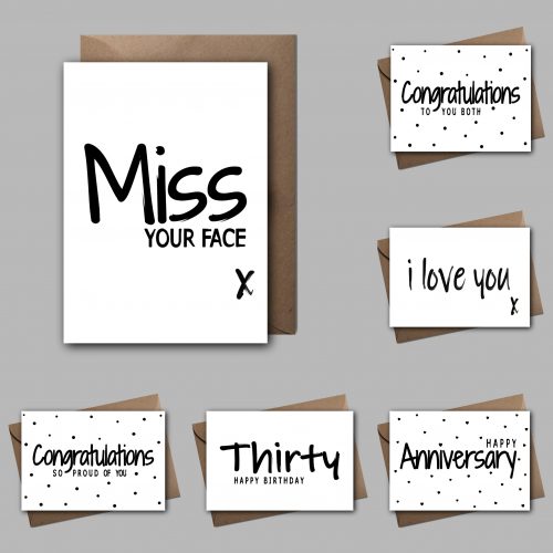 A6 cards are professionally printed on to 300gsm card. Each card comes complete with a brown Kraft envelope. Our cards are supplied in a fully biodegradable, compostable and recyclable cello bag.