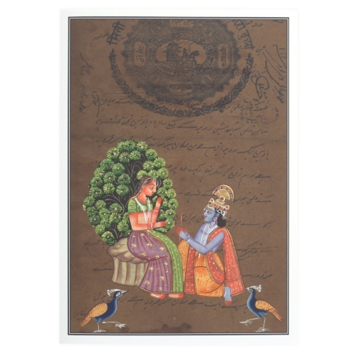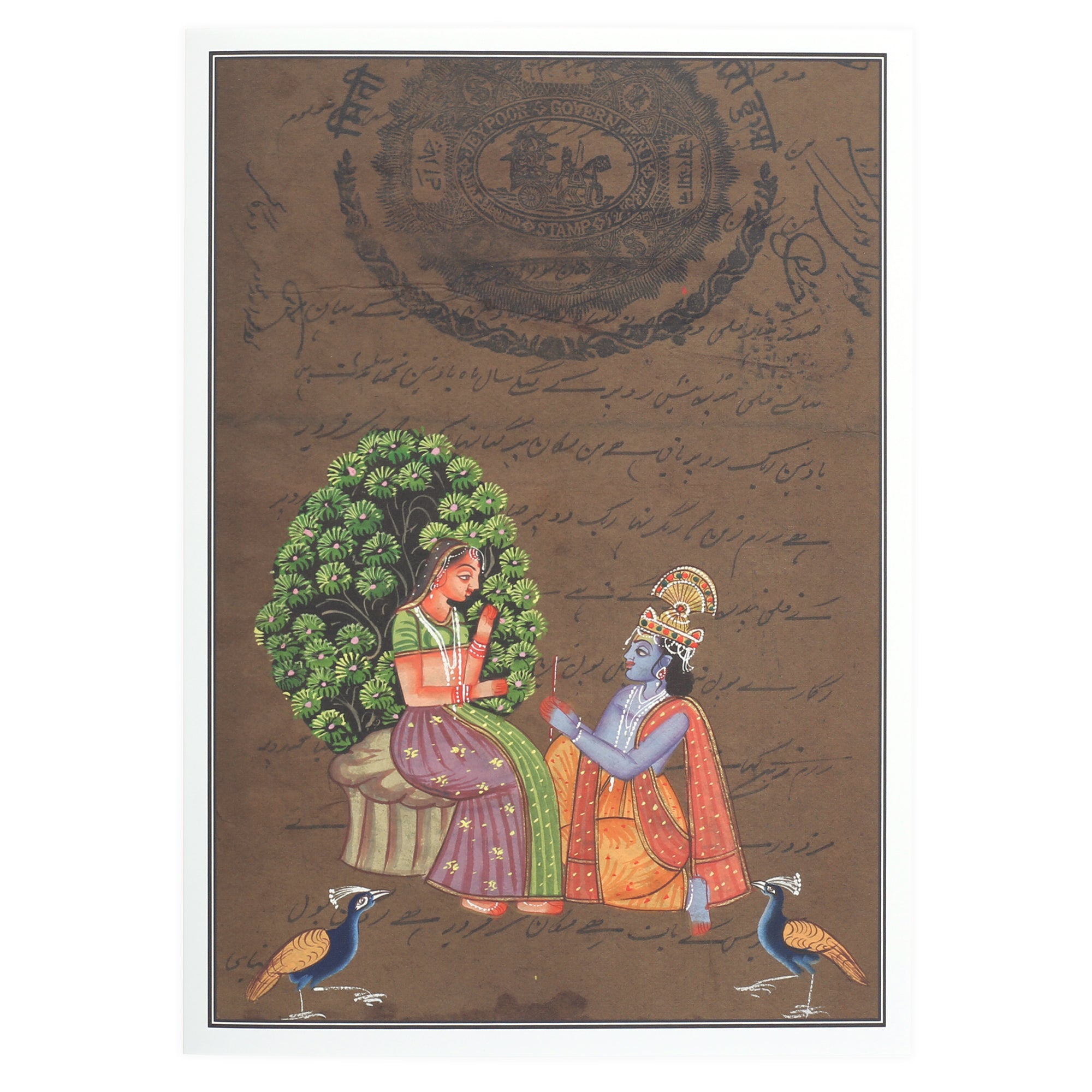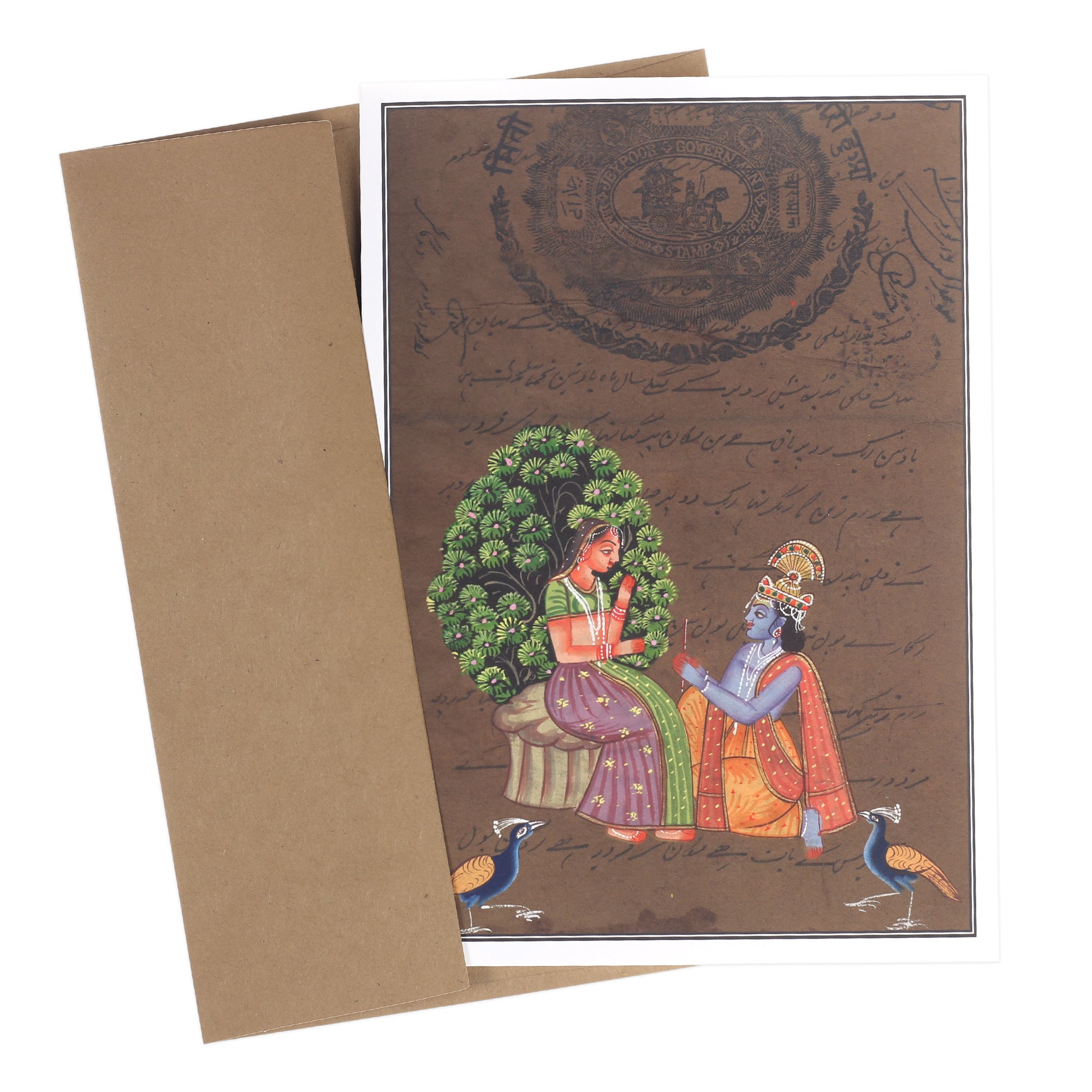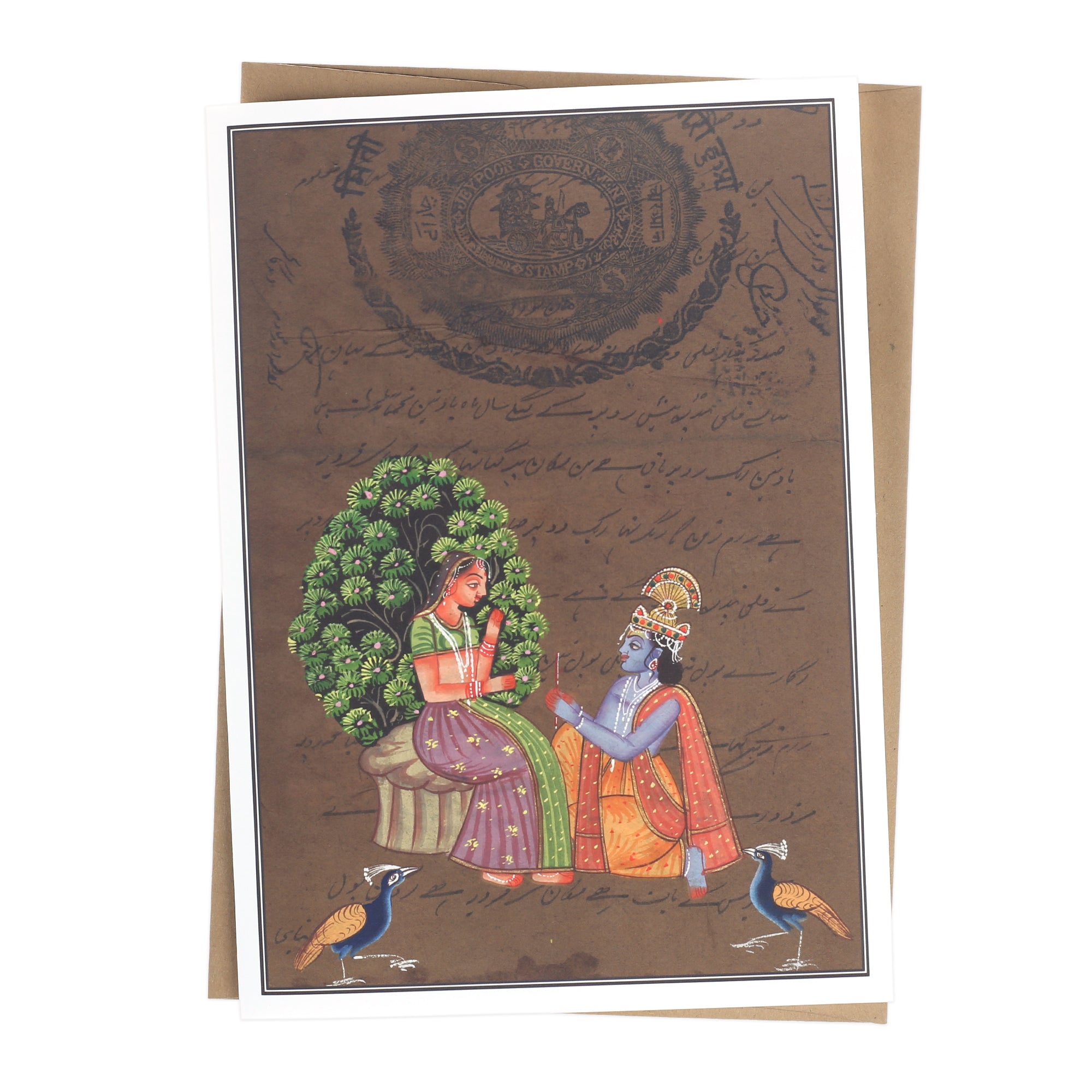 Greeting Card – Rajasthani Miniature Painting – Radha Govinda with Peacocks – 5″x7″