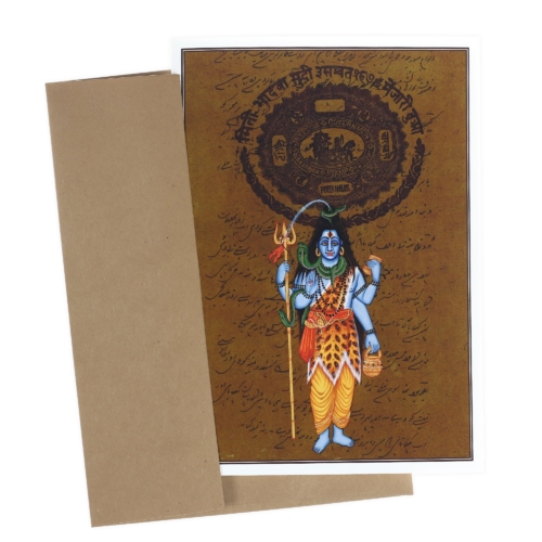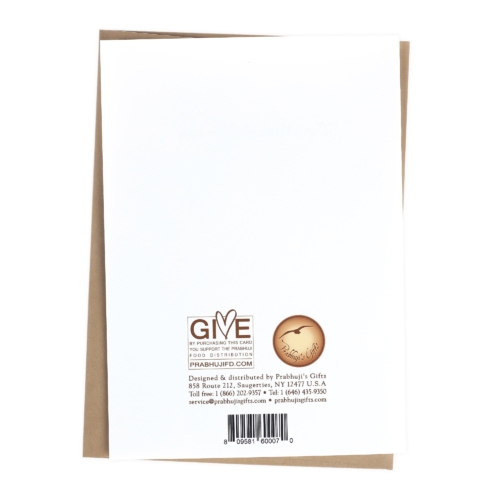 On the cover: ShivaShiva is the destroyer. He destroys in order to create since death is necessary for rebirth into a new life. So the opposites of life and death, creation and destruction, both reside in his character.Inside: Mantra- Om Namah Shivaya These greeting cards feature traditional Rajasthani miniature paintings depicting images from the Ramayana, Krishna Lila and Mahabharata. The paintings are done with great attention to minute details, with strong lines and bold colors, painted over old stamped government paper and handwritten script. The cards are printed on unique matte paper allowing the beautiful colors and finest details to show, for a mesmerizing visual experience. Inside each card you will find the powerful mantras that are corresponding to the deity featured on the card, making them a special gift for every occasion. “A mantra is a door toward reality; it is a powerful force, energy or mystical power; its essence is encapsulated in the structure of a sound vibration. Reciting or chanting a mantra with purity and devotion can profoundly affect one’s physical, energetic, mental, and emotional levels, creating harmony and equilibrium while broadening the dimensions of consciousness.” ~ Prabhuji All profits from Prabhuji’s Gifts greeting cards go towards distributing food to people in need. Charitable Cause: Prabhuji’s Gifts supports Prabhuji Mission, a New York-based, nonprofit religious organization that is home to a spiritual community. Prabhuji mission runs humanitarian projects including the Prabhuji Food Rescue and Prabhuji Food Distribution Programs, in which the organization feeds people in need in the USA, and the Prabhuji Toy Distribution program, helping provide Christmas gifts to children of unprivileged families. By purchasing Prabhuji’s Gifts products, you help support these causes. Specs SKU: 600-07UPC: 8-09581-60007-0Contains: 1 card + EnvelopeCard size: A-7 (7″x5″)HXWXD: 7.5”X5.5”X0.25”Printed in USAReturn Policy: This product is fully refundable.