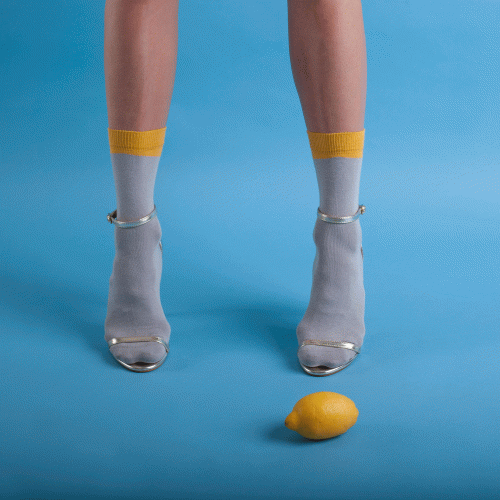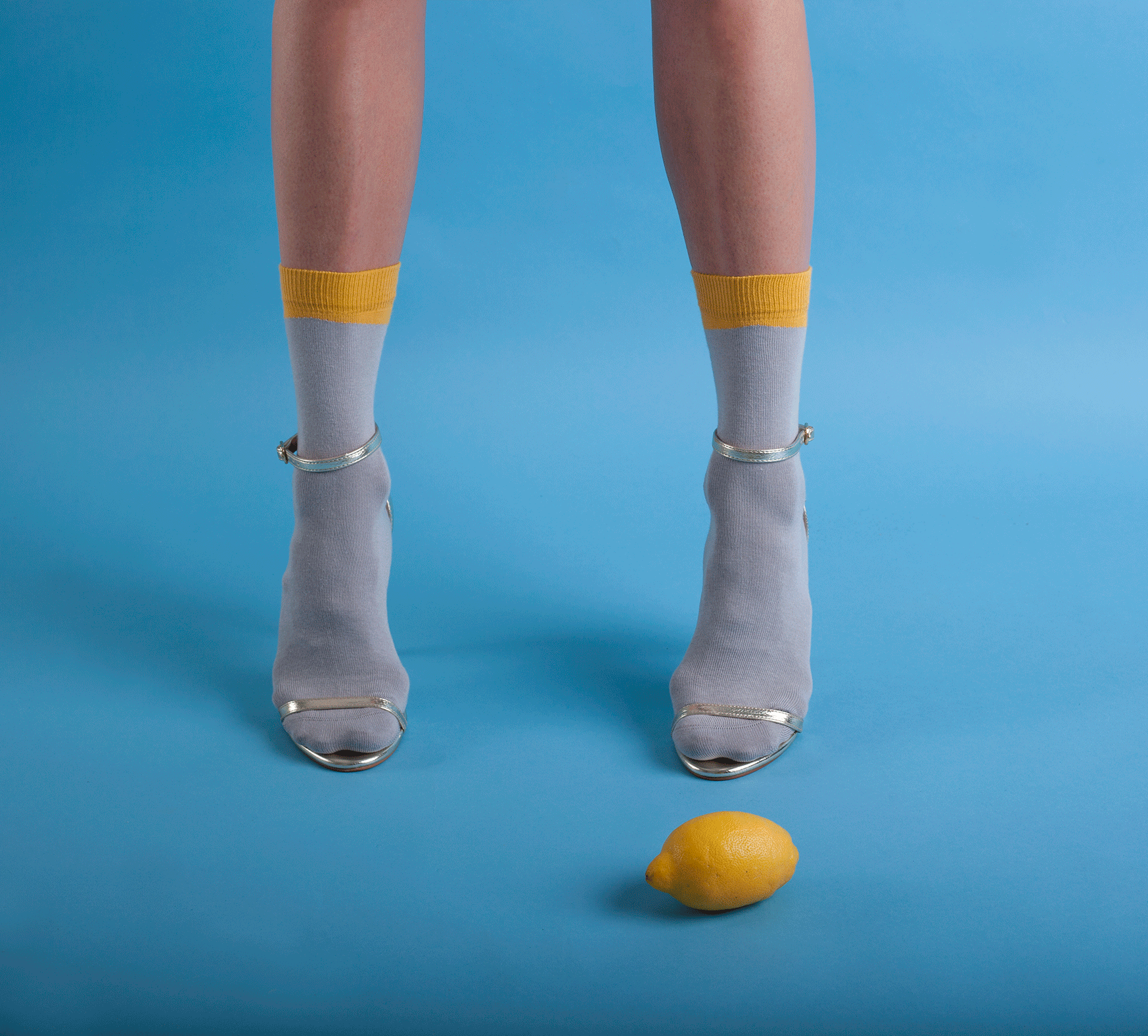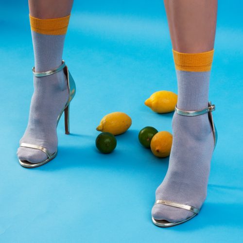 Grey Ankle Socks with Mustard Angled Cuff – Adult