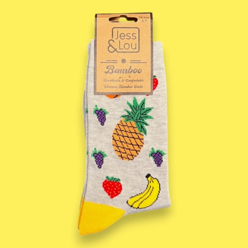 Add a burst of color and sweetness to your day with these Fruit-Patterned Bamboo Socks—the perfect blend of comfort and playful style. Made from eco-friendly bamboo fibers, these socks offer a soft, breathable feel that will keep your feet fresh, cool, and cozy from morning to night.Featuring vibrant fruit-inspired designs, these socks are a fun way to show off your personality while enjoying the natural benefits of bamboo fabric. The moisture-wicking properties help to keep your feet dry and comfortable, while the lightweight material ensures breathability all day long.