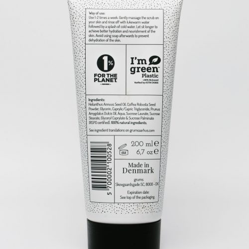 grums raw coffee body scrub is made with a blend of recycled organic drip brewed coffee grounds and pure, natural ingredients. It gives you a deep but mild skin exfoliation treatment, leaving your skin clean, soft and hydrated. Vegan friendly.