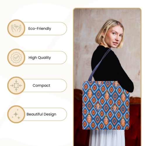 An eco-friendly alternative to plastic shopping bags. Made from durable tapestry and is great for everyday use at work or grocery shopping.