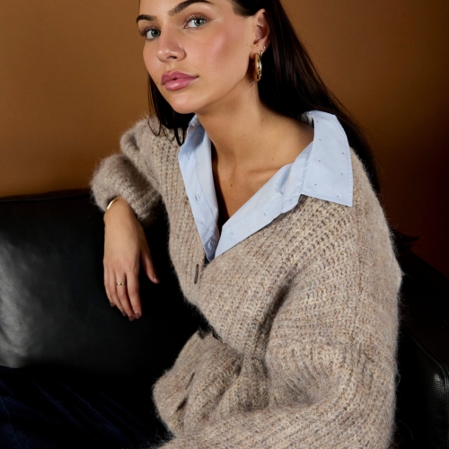 Meet your new go-to layer: the Clare Chunky Cardigan. Designed for effortless comfort and timeless style, this cozy knit is the perfect piece to wrap yourself in when the temperatures drop. Crafted in a beautifully textured, chunky waffle-knit fabric, it features a relaxed fit with a deep V-neckline, drop shoulders, and roomy front patch pockets. The soft, neutral oatmeal tone makes it easy to pair with everything in your wardrobe — from jeans and tees to flowy dresses. ✨ Features: Super-soft chunky knit texture Warm and cozy, without the bulk Relaxed silhouette for easy layering Deep V-neck with open front design Two functional front pockets Ribbed cuffs and hem for structure Whether you’re lounging at home, layering up for brunch, or running errands in style, the Clare Chunky Cardigan adds the perfect cozy-chic touch.