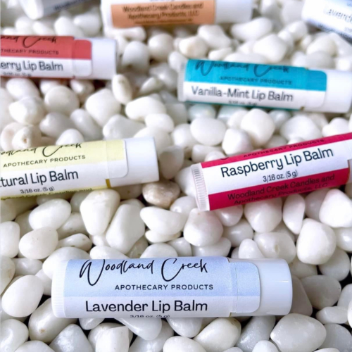 Woodland Creek Lip Balm is made with locally sourced (when possible) beeswax, jojoba oil, grapeseed oil, cocoa butter, shea butter, and vitamin E. Beeswax is a natural emulsifier that helps to thicken and stabilize the balm. Jojoba oil and grapeseed oil are both lightweight and easily absorbed into the skin, providing moisture and softness to the lips. Cocoa butter and shea butter are both rich in antioxidants and fatty acids that help to nourish and protect the delicate skin on the lips. Vitamin E is a powerful antioxidant that helps to prevent damage from free radicals and also supports healthy skin growth. The Cold Sore Lip Balm formulation contains Lemon Balm infused oil and L-Lysine to aid in the prevention of cold sores and may help in the reduction of severity and duration of already established cold sores.