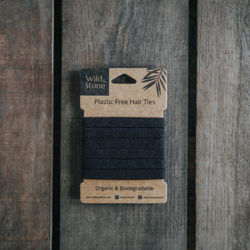 Black Plastic Free Hair Ties (Pack of 6) Our black hair ties are made from 100% organic cotton and plant-based rubber and come in a pack of 6. The perfect eco-friendly replacement for other plastic varieties. With no plastics and no metal, these hair ties are completely biodegradable and create zero waste. It takes 500 years for a normal hair tie to decompose, but when you are finished with your Wild & Stone hair tie, it won’t harm our planet. Happy Workers Safe Conditions Organic Cotton Eco Packaging Zero Waste Low CO2 Vegan Giving Back ◄Product Details 6 x 100% Organic and Biodegradable Hair Ties per set Black 100% Organic Cotton Natural Plant-Based Rubber No Plastic, NO Metal 100% Biodegradable Recyclable Kraft Packaging ◄Reviews ◄More Info Great for every hair type The organic cotton is strong enough for thick hair but soft enough not to cause headaches. They are perfect for every hair type, whether you have straight or curly hair, long or short hair, thick or thin hair, these ties are ideal for everyone, they are the only hair elastics you’ll ever need! Protect your locks The stretchy elastic holds tight for daily use as well as for heavy sports use, the soft cotton leaves no dents or deformations on the hair, designed with no metal to reduce pull on the hair, decreasing breakage and split ends.