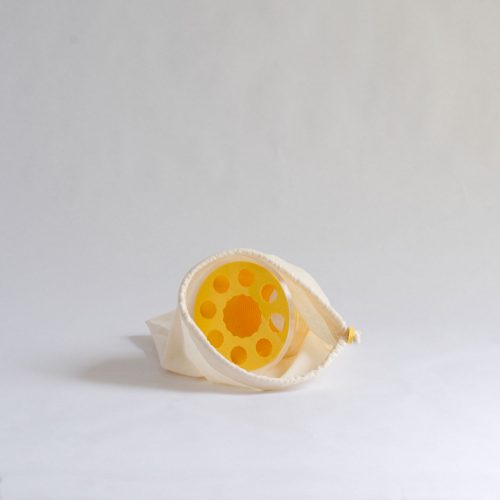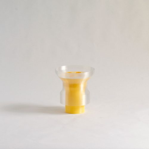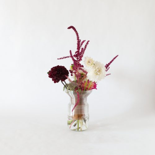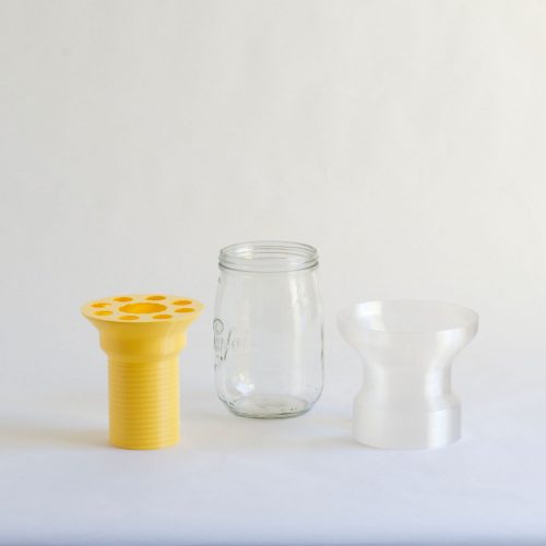Mimo is a half-vase, it’s designed to serve as an extension to a food jar and transform it into a vase. It allows a better hold of the flowers and helps in the composition of the bouquets in particular thanks to the different perforations on the top of the object.