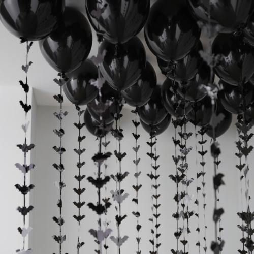 Make your Halloween celebration magical and memorable with our Halloween Balloons Ceiling Kit with Bat Balloon Tails. Easily add character and atmosphere to any room – guaranteed to make your guests’ eyes sparkle! Perfect for creating a magical, spooky scene in any home or party. These Halloween balloons will look incredible displayed in your home or party – the balloons double up as Halloween ceiling decorations, with the Bat balloon tails hanging down so your guests can get fully involved in the action! Each pack contains:35 x 12″ black balloons35 x 1m black bat balloon tails.