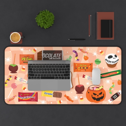 Sweeten Your Setup – Halloween Candy Desk Mat Treat your workspace to a pop of spooky sweetness with our Halloween Candy Desk Mat! Measuring 16″ x 32″, this playful mat is covered in vibrant illustrations of your favorite seasonal candies—perfect for adding a festive touch to your desk during spooky season (or all year long, we won’t judge). Crafted from 100% neoprene, it features a non-slip bottom to keep it securely in place, while the soft, multifunctional surface is ideal for everything from typing and sketching to snacking. Hemmed edges add durability, so it can handle all your tricks and treats with ease. Product features- Non-slip bottom for stable use- Vibrant colors for a lively atmosphere- Hemmed edges for added durability- Multifunctional surface for various tasks- 100% Neoprene material for comfort and usabilityCare instructions- Use warm water and dish soap to clean spots off your pad. It’s not necessary to soak the whole pad. For hard-to-clean spots use a soft-bristled brush.