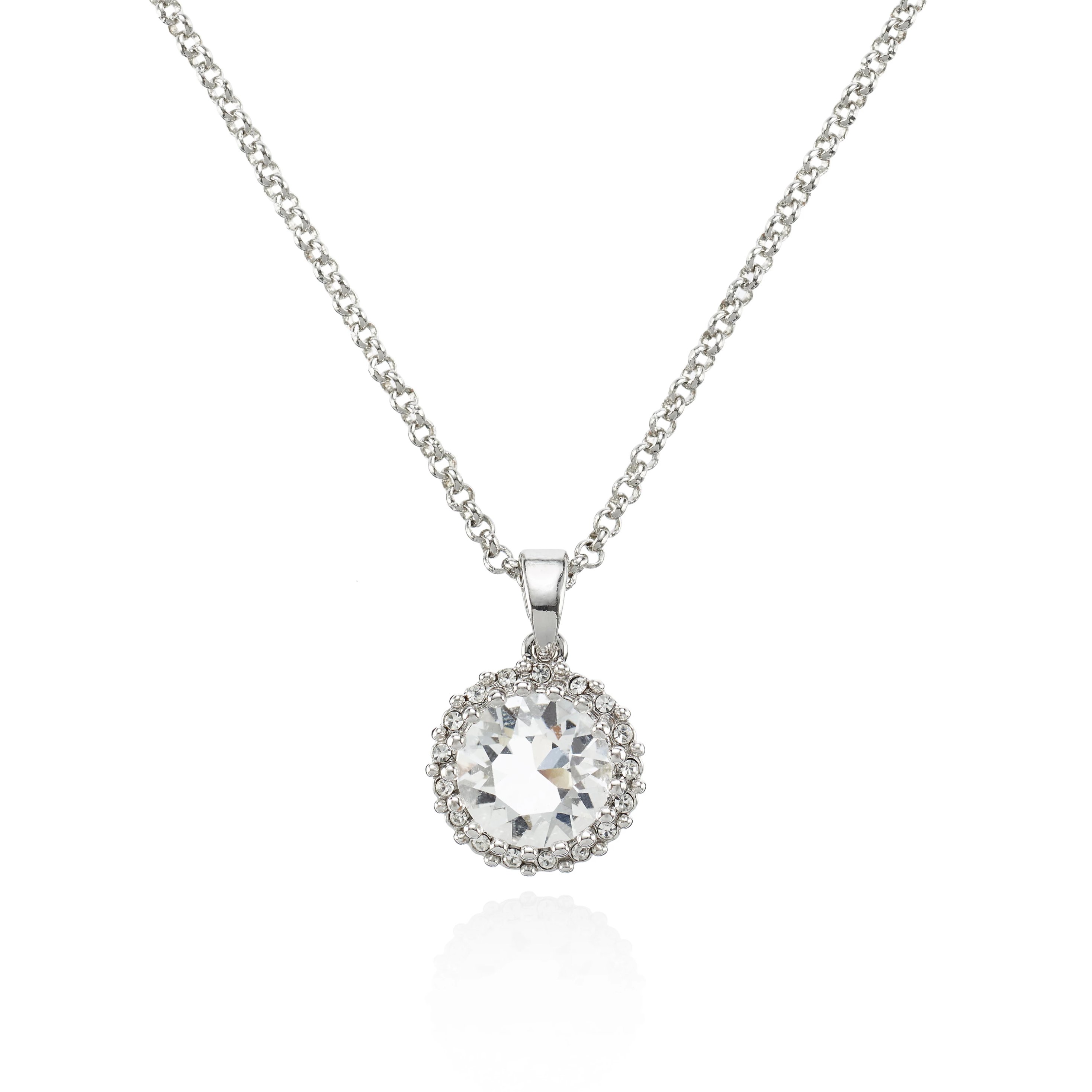 - 1.1cm x 1.1cm Swarovski Crystal pendant with one large stone encircled by a halo of smaller stones