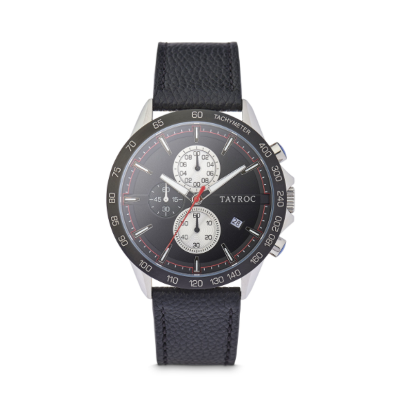 Hampton by Tayroc, the perfect combination of Italian dark leather and British steel. Designed in a dark classic style, complete with a three dial chronograph system and genuine leather strap. Hampton Black/Black is the perfect piece for you if you’re looking for that classic premium style in a modern movement.