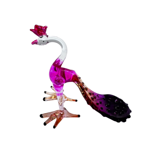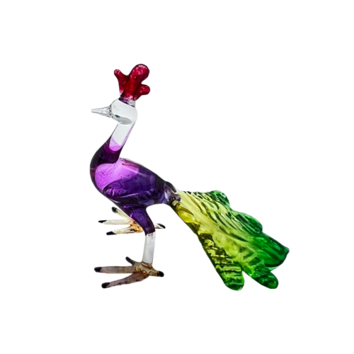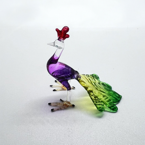 Hand-Blown Glass Sculpture, Peacock, 6×6.3x4cm, Assorted Colour (#017)