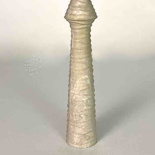 This original work of art was created by a skilled Vietnamese artisan following the design of an accomplished Japanese designer. This white soapstone is the natural color of the stone, unpainted, not dyed. Each piece is carved of a single, solid piece of stone. It is common for this stone to have naturally occurring occlusions which can appear as imperfections. It is these occlusions that give this naturally occurring stone its appeal. Soapstone is a soft rock that is capable of being carved and etched to great deal without fracturing. It is mined in the mountains of Quang Ninh in northern Viet Nam. Each hand-carved object is a symbol of both the aesthetics and talent of the Vietnamese artisans. The soapstone is designed and carved to produce a complete masterpiece. It takes hours to finish ultimately to become a one of a kind piece, truly a reflexion of the character of Vietnam you cannot find anywhere else. Though it is rock, the soapstone is fragile and will break if it is dropped. It will be shipped to you in a box surrounded by bubble-wrap to ensure its safety. This sculptural object measures 16.9 x 3.6 cm (6.6 x 1.4″)