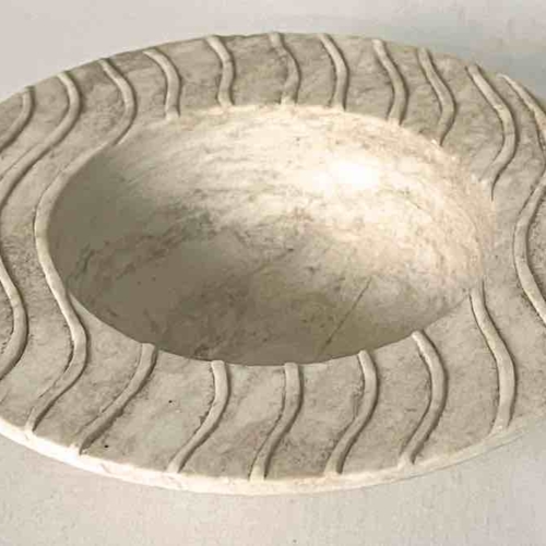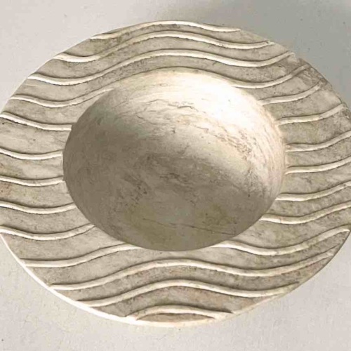 This original work of art was created by a skilled Vietnamese artisan following the design of an accomplished Japanese designer. This white soapstone is the natural color of the stone, unpainted, not dyed. Each piece is carved of a single, solid piece of stone. It is common for this stone to have naturally occurring occlusions which can appear as imperfections. It is these occlusions that give this naturally occurring stone its appeal. Soapstone is a soft rock that is capable of being carved and etched to great deal without fracturing. It is mined in the mountains of Quang Ninh in northern Viet Nam. Each hand-carved object is a symbol of both the aesthetics and talent of the Vietnamese artisans. The soapstone is designed and carved to produce a complete masterpiece. It takes hours to finish ultimately to become a one of a kind piece, truly a reflexion of the character of Vietnam you cannot find anywhere else. Though it is rock, the soapstone is fragile and will break if it is dropped. It will be shipped to you in a box surrounded by bubble-wrap to ensure its safety. This sculptural object measures 11.7 x 3 cm (4.6 x 1.2″)