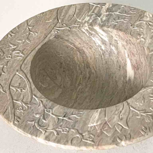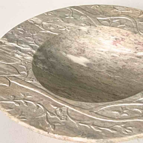 This original work of art was created by a skilled Vietnamese artisan following the design of an accomplished Japanese designer. This white soapstone is the natural color of the stone, unpainted, not dyed. Each piece is carved of a single, solid piece of stone. It is common for this stone to have naturally occurring occlusions which can appear as imperfections. It is these occlusions that give this naturally occurring stone its appeal. Soapstone is a soft rock that is capable of being carved and etched to great deal without fracturing. It is mined in the mountains of Quang Ninh in northern Viet Nam. Each hand-carved object is a symbol of both the aesthetics and talent of the Vietnamese artisans. The soapstone is designed and carved to produce a complete masterpiece. It takes hours to finish ultimately to become a one of a kind piece, truly a reflexion of the character of Vietnam you cannot find anywhere else. Though it is rock, the soapstone is fragile and will break if it is dropped. It will be shipped to you in a box surrounded by bubble-wrap to ensure its safety. This sculptural object measures 14.7 x 3.7 cm (5.8 x 1.5″)