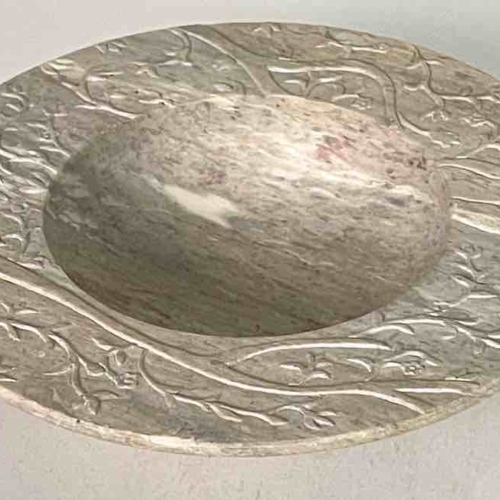 This original work of art was created by a skilled Vietnamese artisan following the design of an accomplished Japanese designer. This white soapstone is the natural color of the stone, unpainted, not dyed. Each piece is carved of a single, solid piece of stone. It is common for this stone to have naturally occurring occlusions which can appear as imperfections. It is these occlusions that give this naturally occurring stone its appeal. Soapstone is a soft rock that is capable of being carved and etched to great deal without fracturing. It is mined in the mountains of Quang Ninh in northern Viet Nam. Each hand-carved object is a symbol of both the aesthetics and talent of the Vietnamese artisans. The soapstone is designed and carved to produce a complete masterpiece. It takes hours to finish ultimately to become a one of a kind piece, truly a reflexion of the character of Vietnam you cannot find anywhere else. Though it is rock, the soapstone is fragile and will break if it is dropped. It will be shipped to you in a box surrounded by bubble-wrap to ensure its safety. This sculptural object measures 14.7 x 3.7 cm (5.8 x 1.5″)