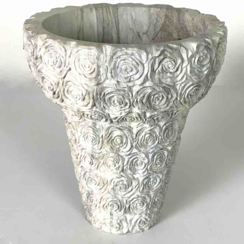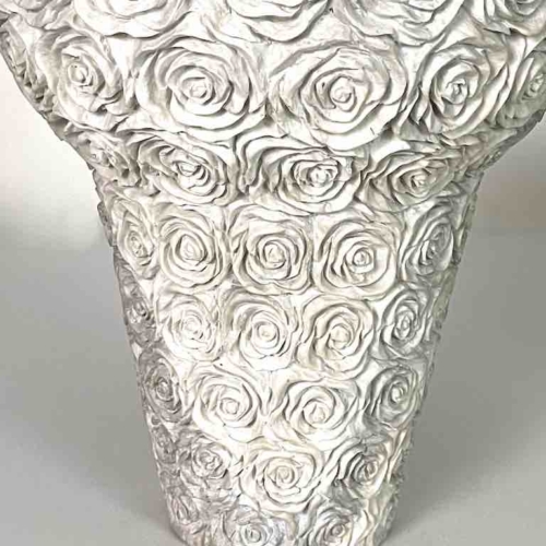 This original work of art was created by a skilled Vietnamese artisan following the design of an accomplished Japanese designer. This white soapstone is the natural color of the stone, unpainted, not dyed. Each piece is carved of a single, solid piece of stone. It is common for this stone to have naturally occurring occlusions which can appear as imperfections. It is these occlusions that give this naturally occurring stone its appeal. Soapstone is a soft rock that is capable of being carved and etched to great deal without fracturing. It is mined in the mountains of Quang Ninh in northern Viet Nam. Each hand-carved object is a symbol of both the aesthetics and talent of the Vietnamese artisans. The soapstone is designed and carved to produce a complete masterpiece. It takes hours to finish ultimately to become a one of a kind piece, truly a reflexion of the character of Vietnam you cannot find anywhere else. Though it is rock, the soapstone is fragile and will break if it is dropped. It will be shipped to you in a box surrounded by bubble-wrap to ensure its safety. This sculptural object measures 21.5 x 19.5 cm (8.5 x 7.7″)