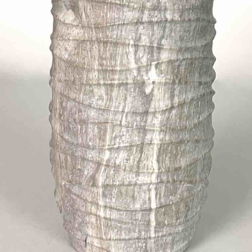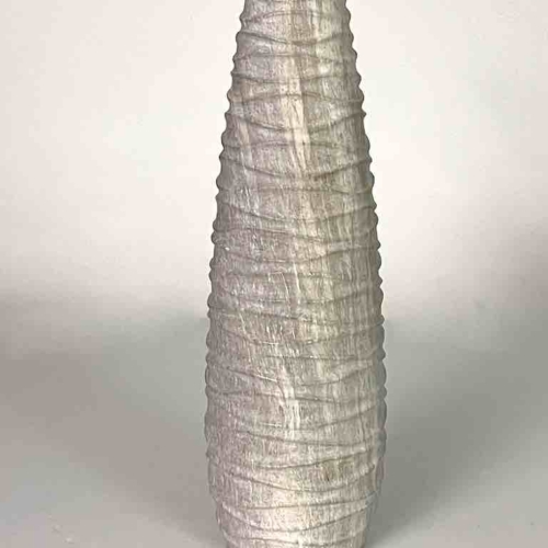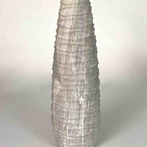 This original work of art was created by a skilled Vietnamese artisan following the design of an accomplished Japanese designer. This white soapstone is the natural color of the stone, unpainted, not dyed. Each piece is carved of a single, solid piece of stone. It is common for this stone to have naturally occurring occlusions which can appear as imperfections. It is these occlusions that give this naturally occurring stone its appeal. Soapstone is a soft rock that is capable of being carved and etched to great deal without fracturing. It is mined in the mountains of Quang Ninh in northern Viet Nam. Each hand-carved object is a symbol of both the aesthetics and talent of the Vietnamese artisans. The soapstone is designed and carved to produce a complete masterpiece. It takes hours to finish ultimately to become a one of a kind piece, truly a reflexion of the character of Vietnam you cannot find anywhere else. Though it is rock, the soapstone is fragile and will break if it is dropped. It will be shipped to you in a box surrounded by bubble-wrap to ensure its safety. This sculptural object measures 32 x 9 cm (12.6 x 3.5″)
