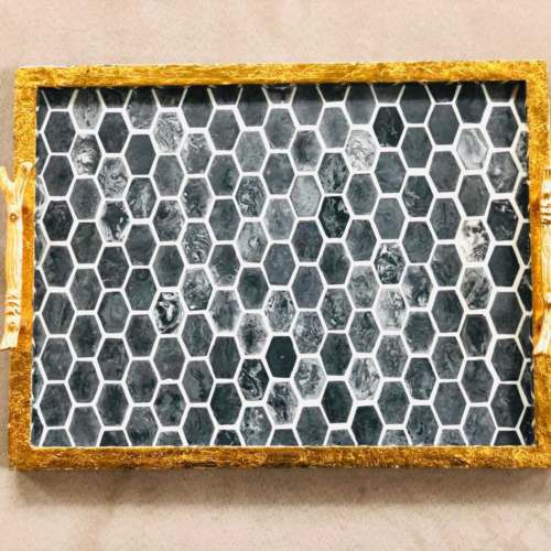 Add a gorgeous color and fun pattern to your entryway table with Tiramisu Resin Decorative Tray. This tray is perfect for holding your keys, glasses, and even reading materials. It’s guaranteed to draw admiring attention at your next gathering. This tray is both functional and fashionable, making a statement with a daring and geometric pattern.