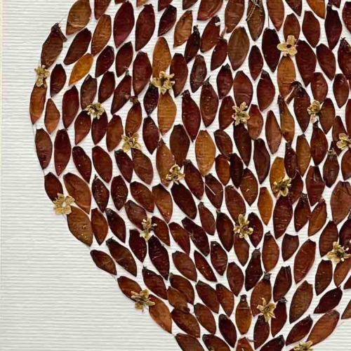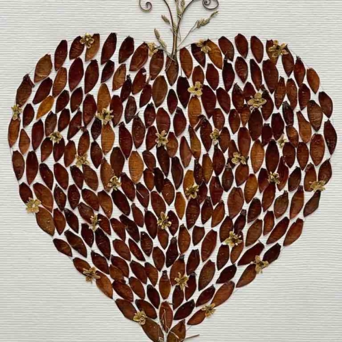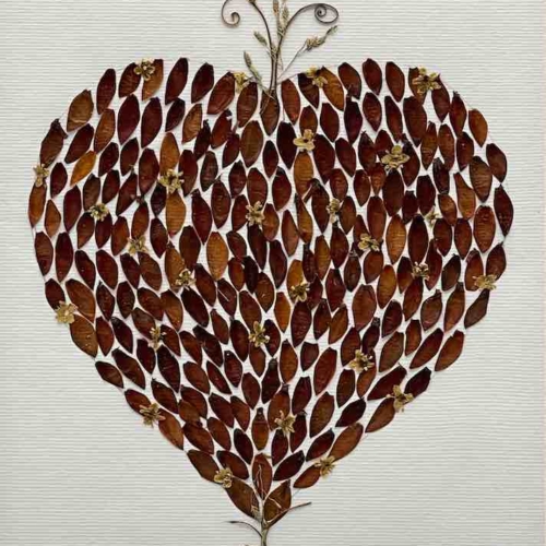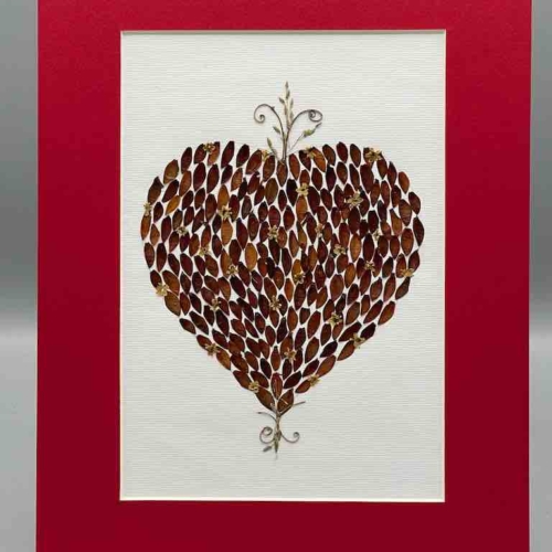 Each of these stunning high quality collages features an individually handmade dried flower design; every one is a unique work of art. All the flowers and leaves used to make these amazing creations are sustainably grown in El Salvador. They are made by a cooperative of women in the mountains around San Salvador, the income from which gives them a life of much greater flexibility and potential. Each woman involved is an accomplished artist. The collage itself measures 7 7/8 x 5 1/8″ (20 x 13 cm). The overall, framed item measures 10 7/8 x 8″ (28 x 20 cm)