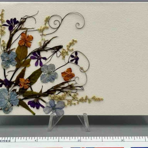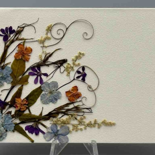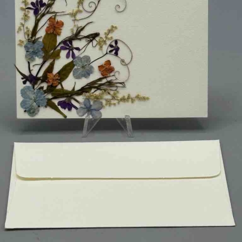 Each of these small stunning high quality gift cards features an individually handmade dried flower design; every one is a unique work of art. All the flowers and leaves used to make these amazing creations are sustainably grown in El Salvador. They are made by a cooperative of women in the mountains around San Salvador, the income from which gives them a life of much greater flexibility and potential. Each woman involved is an accomplished artist. Each card measures 3 11/16 x 2 5/8″ (9 x 7 cm).