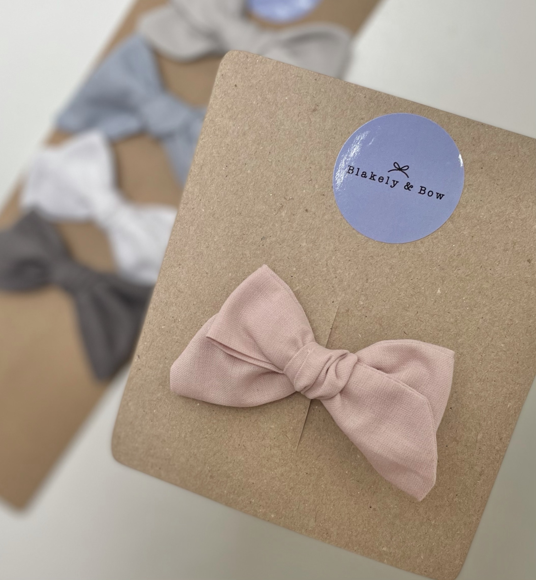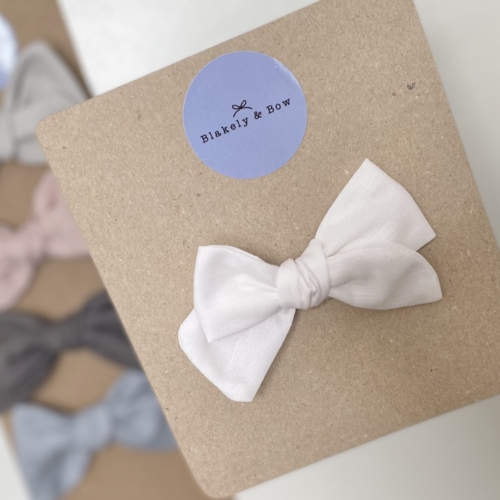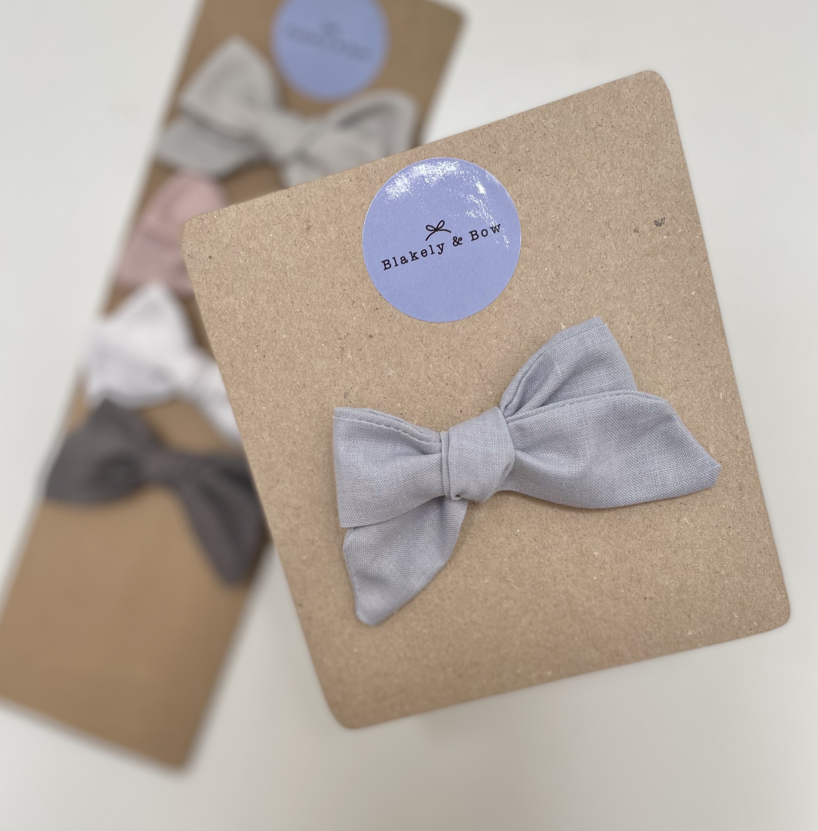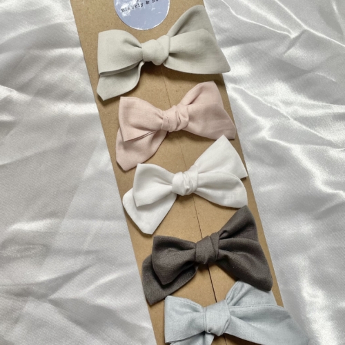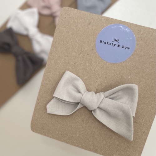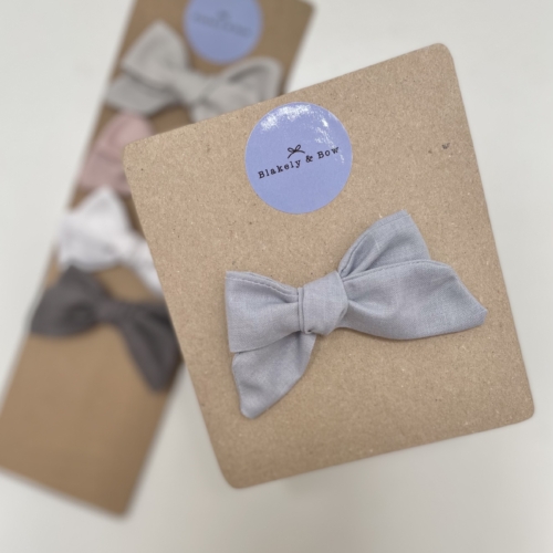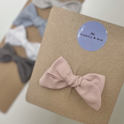 Bows colour options are available in pink, blue, light grey, charcoal grey, white or mixed. (mixed= a box of a small selection of all of above colours)
