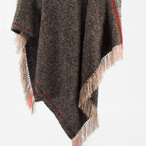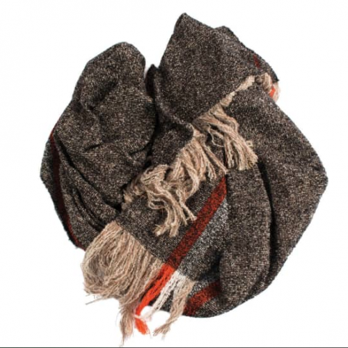 Handwoven Alpaca Throw – Taupe & Orange