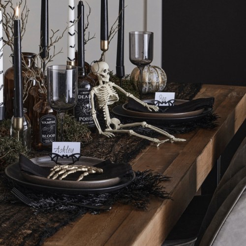 Bring some spooky cheer to your Halloween decorations with our Hanging Halloween Skeleton Decoration. Made from high-quality materials, this bony companion will immediately spark sinister delight in your guests. With its hauntingly realistic details, this well-crafted skeleton is sure to make a lasting impression. Are you ready to scare? Shop now! Dimensions: Height 35cm.