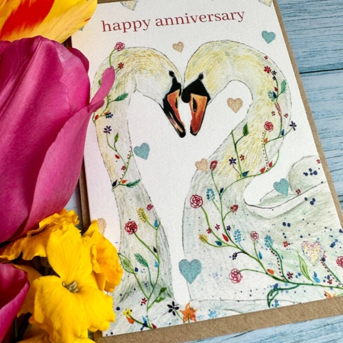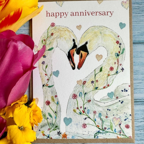 Happu Anniversary | Swans | Nature | Swan | Love | Eco Friendly Card | Colourful | Friend | Blank | Occasion | Greetings | Cute | Watercolour | Jen Winnett Art | Friend | Couple | Wedding