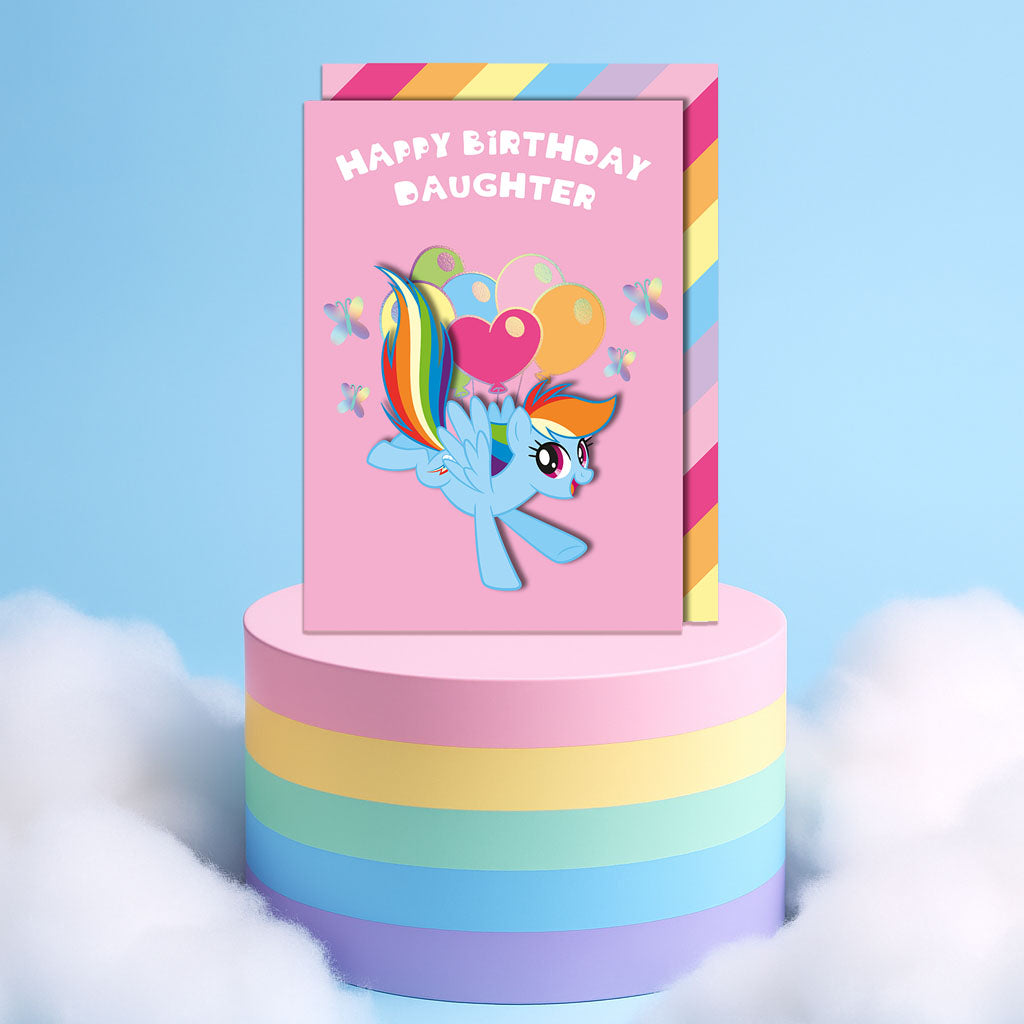 Happy Birthday Daughter, Rainbow Dash Card Info: RRP £4.25 3D card, handmade in the UKComes with a matching printed envelopeBlank inside for your own message Dimensions: 133 x 185 mm