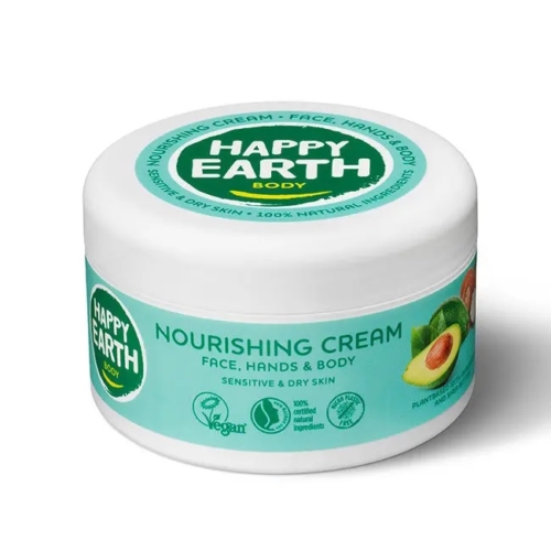 The purest and most sustainable care for your skin and for the earth. Happy Earth Nourishing Cream is a nourishing cream for your hands, face, and body. 100% natural, 100% caring, and free from microplastics.