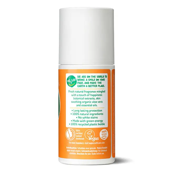 Happy Earth Pure Deodorant Roll-On Rose Petitgrain is a 100% natural, vegan deodorant made from ingredients that make your skin and the earth happy. With a unique blend of 100% natural fragrance extracts and essential oils, the deodorant is not only 100% effective, but also 100% caring. This deodorant is aluminum-free and contains no alcohol, parabens or propellants. We proudly carry the NATRUE and Vegan Society quality marks. With this deodorant you take good care of yourself and our planet!