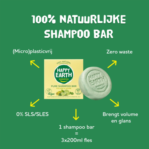 This product, like all other Happy Earth products, is certified vegan and microplastic-free. The shampoo bar is zero waste and 100% plastic free. In addition, using a bar is a lot more sustainable in use: 1 bar = 3x 200ml bottles of shampoo!