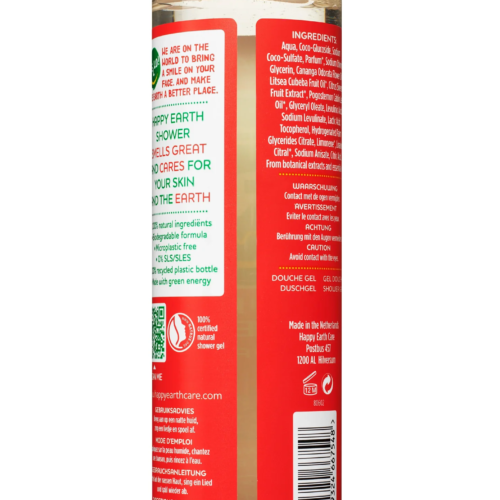 Happy Earth Pure Shower Gel Floral Patchouli is a 100% natural, vegan shower gel made from ingredients that make your skin and the earth happy. All ingredients in this body lotion are certified 100% natural and have the Natrue and Vegan Society quality marks. When you apply something to your skin and rinse it down the shower drain, it is nice to know that it does not contain any polluting and unpleasant ingredients such as SLS/SLES, parabens, dyes or other nasty additives. All Happy Earth shower gels are free of microplastics. With this shower gel you take good care of yourself and our planet!