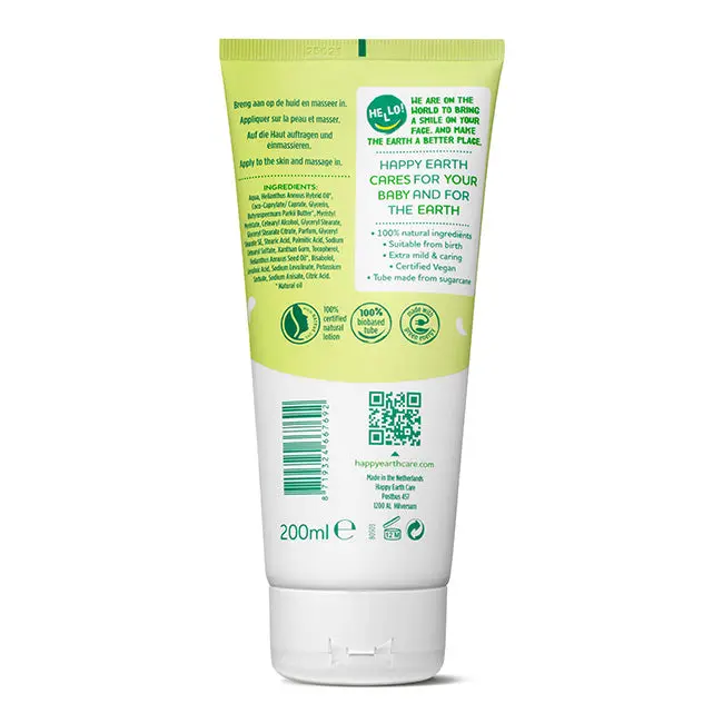 This product, like all other Happy Earth products, is certified vegan and microplastic-free. The packaging is a 100% biobased tube made from sugar cane and we produce all our products locally in the Netherlands with green energy.