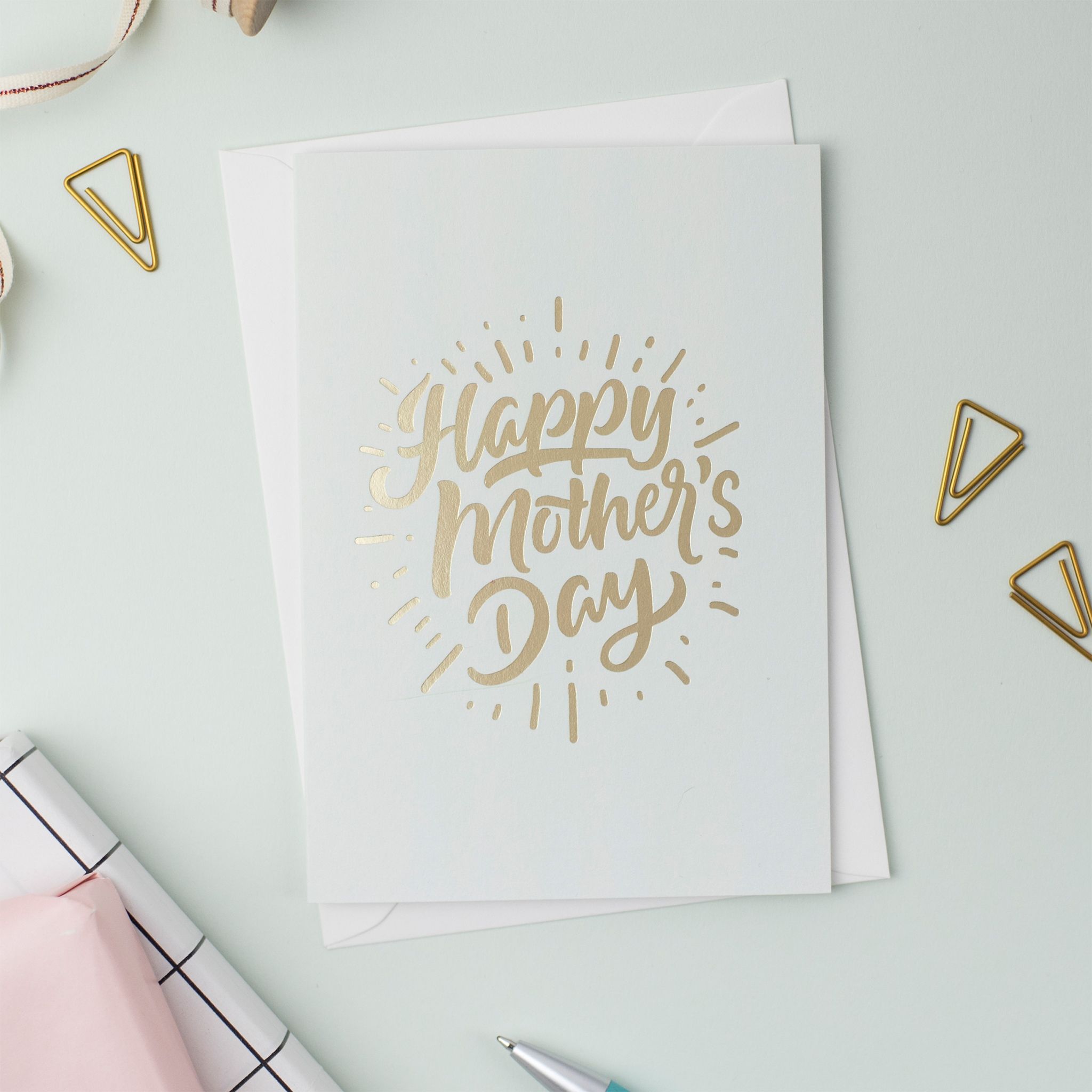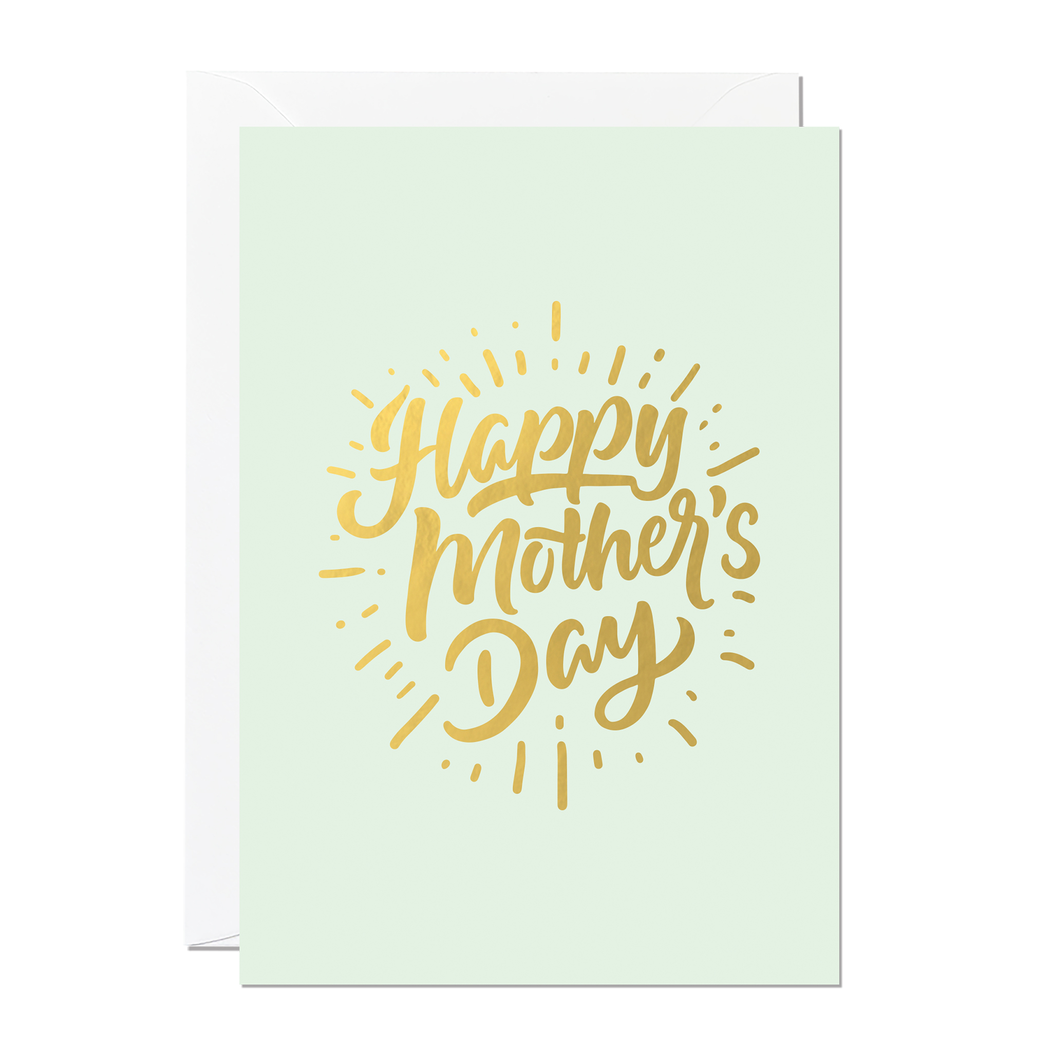This Mother’s Day card has a light mint green background and features hand-lettering reading ‘Happy Mother’s Day’. It’s printed with a beautiful and luxe gold foil. Along with every card in our collection, it’s been printed in England on a luxury card stock milled in the Lake District and paired with an equally premium envelope._x000D_Printed in the UK_x000D_Gold foil_x000D_300gsm GF Smith board_x000D_A6 in size_x000D_Blank inside_x000D_Paired with a luxury white envelope