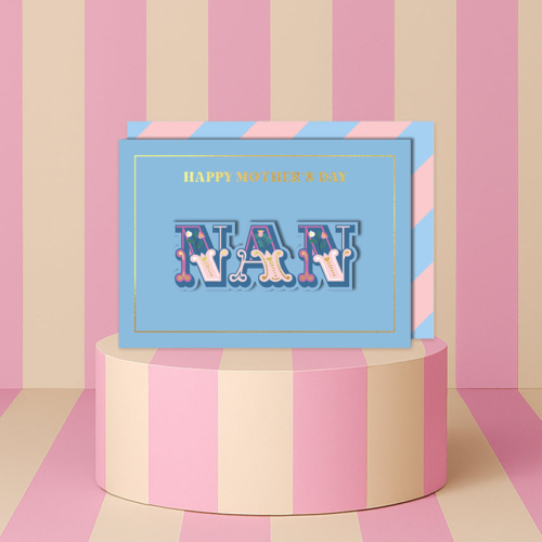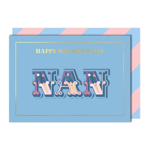 Happy Mothers Day Nan Card Info: RRP: £4.25 3D card, handmade in the UK Comes with a funky retro matching printed envelope Blank Inside Luxury 350 gsm board Dimensions: 133 x 185 mm