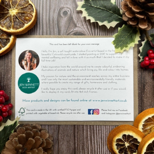 | cute blank | Pun | Colourful | Nature | Art card | Watercolour | Unique | Farm| Different | Eco Friendly Card | Colourful | Blank | Friend | Family | | Occasion | Greetings | Xmas | Snow | By Jen Winnett Art | British wildlife