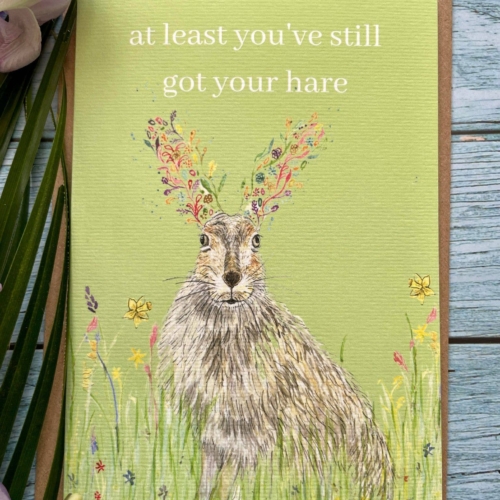 Hare Funny Birthday | At least you still have hare | Eco Friendly Card Cute Colourful | Eco Friendly Card Cute Colourful Wildlife | Eco Friendly Card Cute Colourful | Colourful | Birthday Blank | Friend | Blank | Funny | Occasion | Greetings | Hares